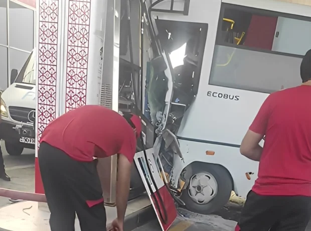 Bakı-Quba yolunda avtobus yanacaqdoldurma məntəqəsinə çırpılıb.
