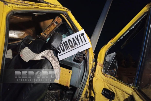 “Report” xəbər verir ki, hərəkətdə olan “Ford Tranzit” markalı avtomobil yolun kənarındakı beton maneəyə çırpılıb.