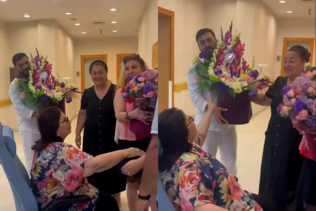 Bacısını xəstəxanada ziyarət edən sənətçi həmin görüntüləri izləyicilərlə bölüşüb. Aybəniz xanım paylaşımına “Çox şükür, Şahnaz xanım artıq evə buraxıldı, əziz dostlar” sözlərini yazıb.